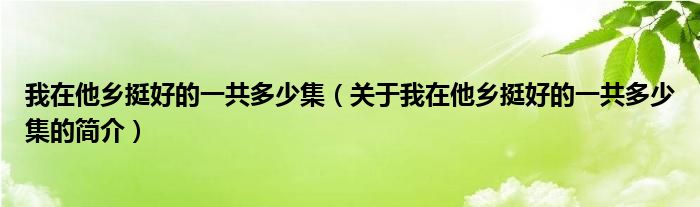 本文關于我在他鄉挺好的一共多少集的簡介就講解完畢,希望對大家有所幫助。