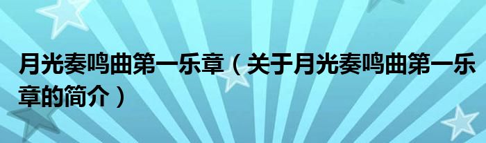 本文關于月光奏鳴曲第一樂章的簡介就講解完畢,希望對大家有所幫助。