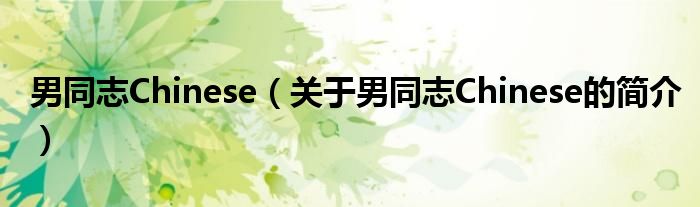 本文關(guān)于男同志Chinese的簡(jiǎn)介就講解完畢,希望對(duì)大家有所幫助。