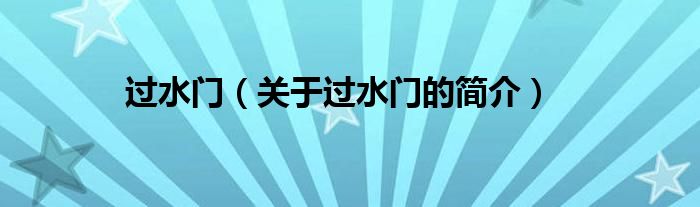 本文關于過水門的簡介就講解完畢,希望對大家有所幫助。