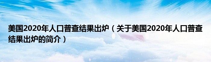 大家好,美國2020年人口普查結(jié)果出爐,關(guān)于美國2020年人口普查結(jié)果出爐的簡介很多人還不知道,現(xiàn)在讓我們一起來看看吧!