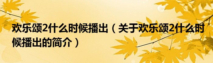 本文關(guān)于歡樂頌2什么時(shí)候播出的簡(jiǎn)介就講解完畢,希望對(duì)大家有所幫助。