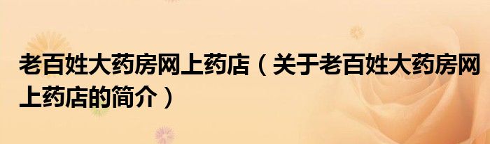 本文關(guān)于老百姓大藥房網(wǎng)上藥店的簡介就講解完畢,希望對(duì)大家有所幫助。