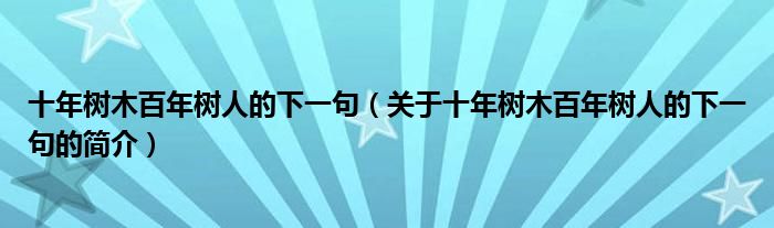 本文關(guān)于十年樹木百年樹人的下一句的簡介就講解完畢,希望對(duì)大家有所幫助。