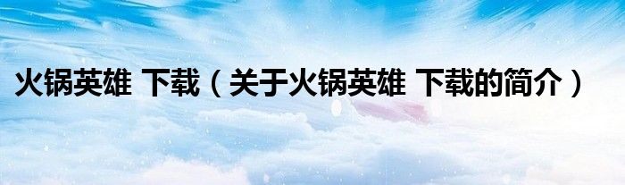 大家好,火鍋英雄 下載,關(guān)于火鍋英雄 下載的簡(jiǎn)介很多人還不知道,現(xiàn)在讓我們一起來(lái)看看吧!