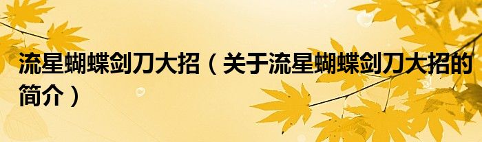 大家好,流星蝴蝶劍刀大招,關(guān)于流星蝴蝶劍刀大招的簡介很多人還不知道,現(xiàn)在讓我們一起來看看吧!