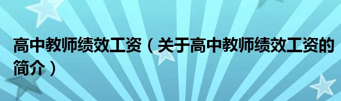 本文關于高中教師績效工資的簡介就講解完畢,希望對大家有所幫助。