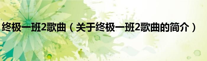 本文關(guān)于終極一班2歌曲的簡介就講解完畢,希望對大家有所幫助。