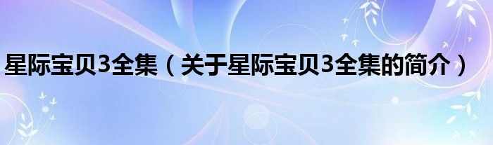 本文關于星際寶貝3全集的簡介就講解完畢,希望對大家有所幫助。