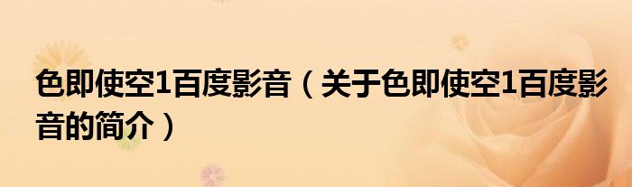 本文關于色即使空1百度影音的簡介就講解完畢,希望對大家有所幫助。