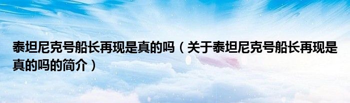 本文關于泰坦尼克號船長再現是真的嗎的簡介就講解完畢,希望對大家有所幫助。