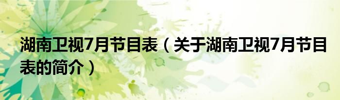 本文關(guān)于湖南衛(wèi)視7月節(jié)目表的簡(jiǎn)介就講解完畢,希望對(duì)大家有所幫助。