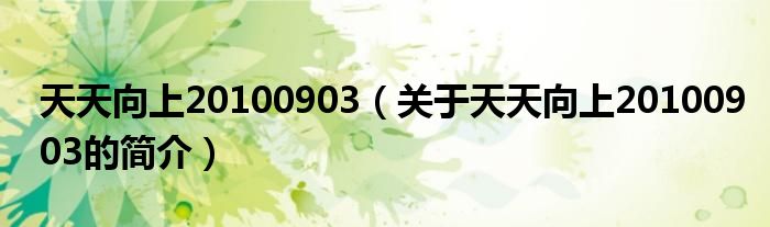 大家好,天天向上20100903,關于天天向上20100903的簡介很多人還不知道,現在讓我們一起來看看吧!