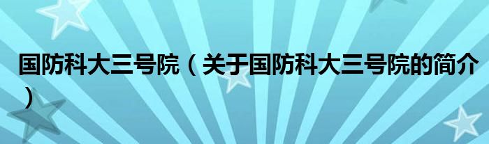 本文關于國防科大三號院的簡介就講解完畢,希望對大家有所幫助。