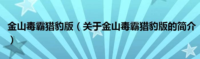 大家好,金山毒霸獵豹版,關于金山毒霸獵豹版的簡介很多人還不知道,現在讓我們一起來看看吧!