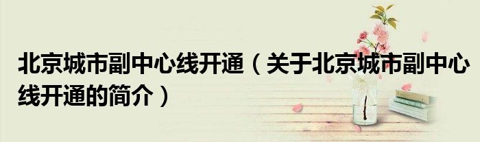 大家好,北京城市副中心線開通,關于北京城市副中心線開通的簡介很多人還不知道,現在讓我們一起來看看吧!