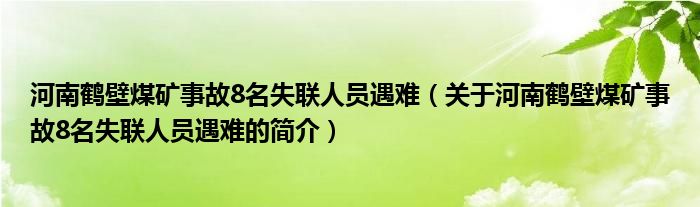 本文關(guān)于河南鶴壁煤礦事故8名失聯(lián)人員遇難的簡(jiǎn)介就講解完畢,希望對(duì)大家有所幫助。