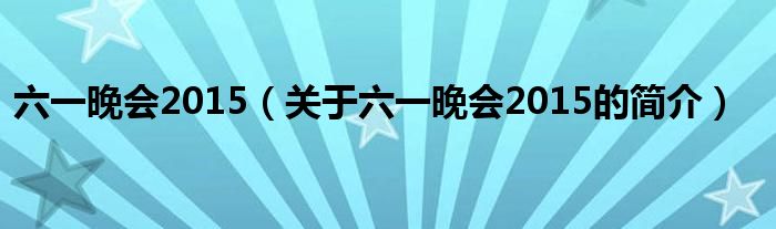 大家好,六一晚會2015,關于六一晚會2015的簡介很多人還不知道,現在讓我們一起來看看吧!