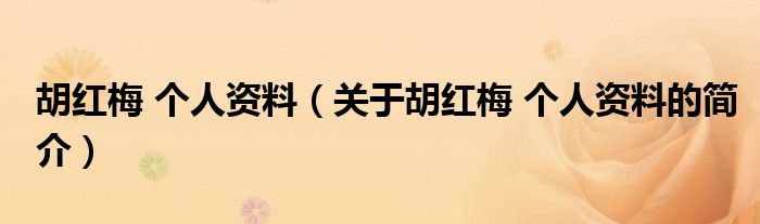本文關于胡紅梅 個人資料的簡介就講解完畢,希望對大家有所幫助。