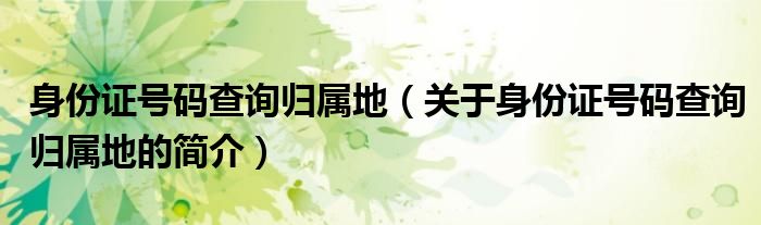 本文關于身份證號碼查詢歸屬地的簡介就講解完畢,希望對大家有所幫助。