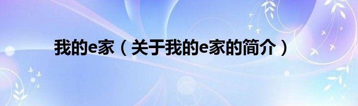 本文關于我的e家的簡介就講解完畢,希望對大家有所幫助。