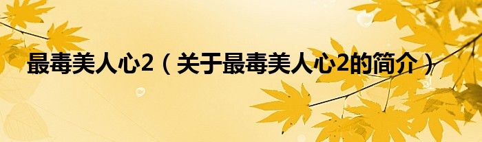 本文關于最毒美人心2的簡介就講解完畢,希望對大家有所幫助。