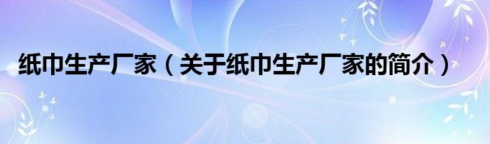 本文關(guān)于紙巾生產(chǎn)廠家的簡(jiǎn)介就講解完畢,希望對(duì)大家有所幫助。