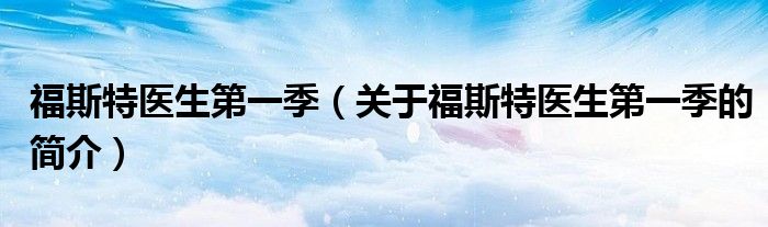 大家好,福斯特醫生第一季,關于福斯特醫生第一季的簡介很多人還不知道,現在讓我們一起來看看吧!