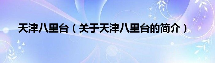 本文關于天津八里臺的簡介就講解完畢,希望對大家有所幫助。