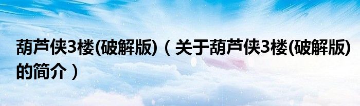 本文關(guān)于葫蘆俠3樓(破解版)的簡介就講解完畢,希望對大家有所幫助。