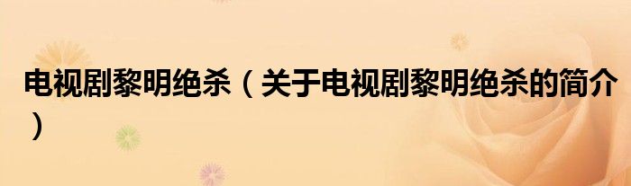 本文關(guān)于電視劇黎明絕殺的簡(jiǎn)介就講解完畢,希望對(duì)大家有所幫助。