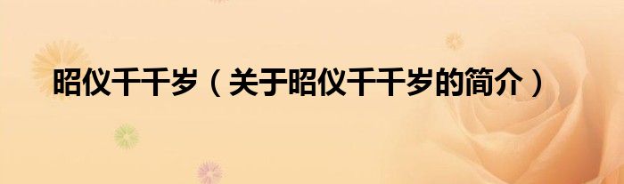 大家好,昭儀千千歲,關(guān)于昭儀千千歲的簡介很多人還不知道,現(xiàn)在讓我們一起來看看吧!