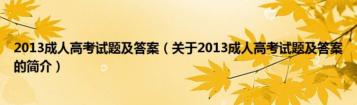 本文關(guān)于2013成人高考試題及答案的簡介就講解完畢,希望對(duì)大家有所幫助。