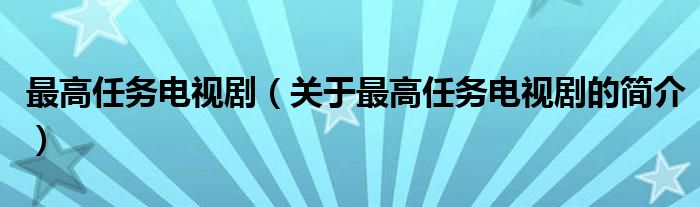 本文關(guān)于最高任務(wù)電視劇的簡介就講解完畢,希望對(duì)大家有所幫助。