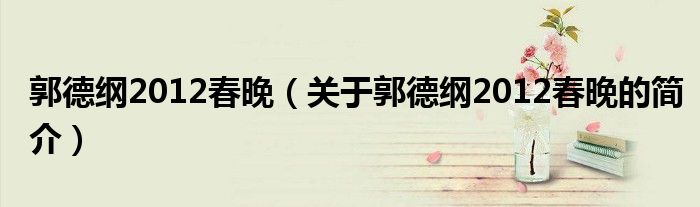 本文關于郭德綱2012春晚的簡介就講解完畢,希望對大家有所幫助。