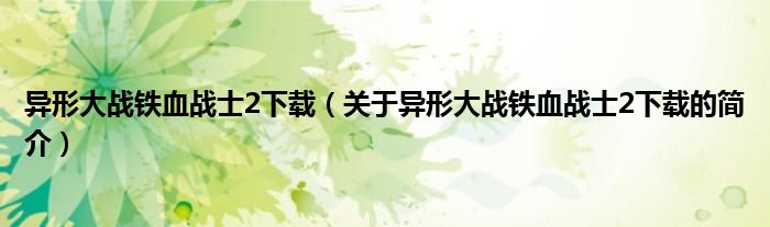 本文關于異形大戰鐵血戰士2下載的簡介就講解完畢,希望對大家有所幫助。