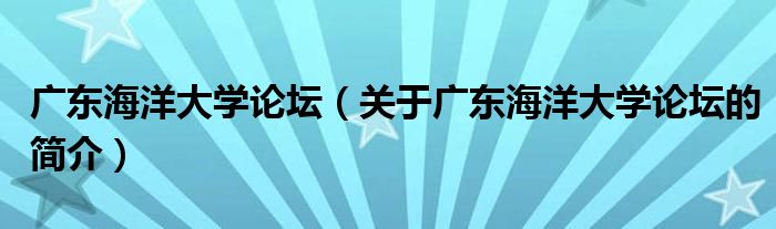 大家好,廣東海洋大學論壇,關于廣東海洋大學論壇的簡介很多人還不知道,現在讓我們一起來看看吧!