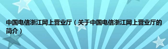 本文關于中國電信浙江網上營業廳的簡介就講解完畢,希望對大家有所幫助。