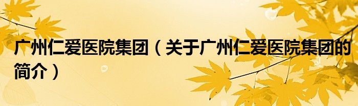 本文關于廣州仁愛醫院集團的簡介就講解完畢,希望對大家有所幫助。