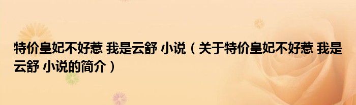 本文關(guān)于特價(jià)皇妃不好惹 我是云舒 小說(shuō)的簡(jiǎn)介就講解完畢,希望對(duì)大家有所幫助。