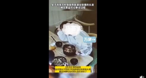 近日在陜西咸陽(yáng),一個(gè)女子帶孩子吃飯時(shí),故意在菜里扔頭發(fā),而這個(gè)過(guò)程全部都被店中的監(jiān)控拍攝了下來(lái),從視頻中看到這個(gè)女子在最后快吃完的時(shí)候,將頭發(fā)扔進(jìn)了飯菜里面,女子先是摸了摸自己的頭發(fā),然后東張西望了一番之后將頭發(fā)扔進(jìn)了飯菜里面,端著碗就去找了店家要求賠償,由于當(dāng)時(shí)店里比較忙,所以店家就將錢退給了這個(gè)女子,在事后店家查了一下監(jiān)控,才發(fā)現(xiàn)這個(gè)女子是故意人的頭發(fā)。