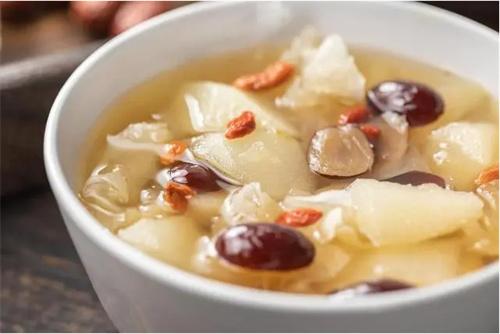 第1種湯就是銀耳紅棗枸杞湯,先將銀耳泡在水中泡發之后將銀耳清洗干凈,撕成小塊,加入紅棗枸杞和冰糖一起下入鍋中煮,制這個過程需要40分鐘左右,等到將銀耳中的膠全部熬出之后,再加入適量的枸杞進行攪拌,就可以出鍋了,知道銀耳紅棗枸杞湯具有非常好的美容養顏作用,在夏季可以多喝一些也有一定的消暑作用。