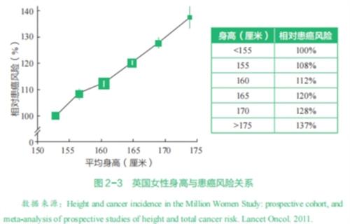 研究結果表示并不是某一種癌癥每增長10厘米后會有一定的風險增高,而是幾乎所有癌癥類型都會伴隨著身高的增加而增加風險,女性相比于男性來說身高和癌癥關系會更為明顯一些。