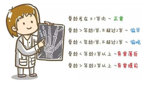 孩子在生長(zhǎng)發(fā)育過(guò)程中受到性別,環(huán)境和營(yíng)養(yǎng)攝入等方面的問(wèn)題,會(huì)讓骨齡發(fā)生一些變化,從而與年齡出現(xiàn)一些偏差,這種情況被稱(chēng)作為骨齡差,一般來(lái)說(shuō),骨齡差控制在正負(fù)一歲左右是允許的,也是被看作為正常發(fā)育。如果骨齡大于實(shí)際年齡一歲以上沒(méi)超過(guò)兩歲,可以看成早熟,如果超過(guò)了兩歲那么就是屬于異常提前發(fā)育,如果低于一歲屬于偏晚發(fā)育,低于兩歲或以上那么就屬于落后發(fā)育了,要及時(shí)前往醫(yī)院就醫(yī)處理。
