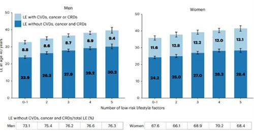 研究人員分析了以前統計的中國慢性病前瞻性研究數據庫中451233名中國成年人,分析了這些成年人的健康方式對于三種主要非傳染性疾病的影響,有慢性呼吸道疾病,癌癥,心血管疾病,研究健康的生活方式是否能夠幫助中國成年人預防這些疾病的發生延長成年人的壽命。