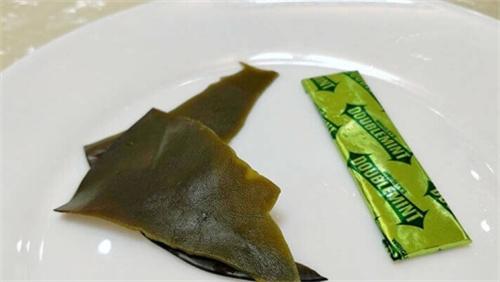 海帶的外形是一個長長的帶子,看起來比較薄,呈現褐色,顏色會暗一些,在海中會有海帶柄這些結構去固定物體,海帶餅并沒有分枝,連接著海帶片和固定器,中間并不分裂。裙帶菜和它的名字一樣,是非常像裙帶的,所有稱之為裙帶菜,整個顏色偏向翠綠,長度大約只有兩厘米左右,通常更為厚實一些,吃起來會有更好的口感。