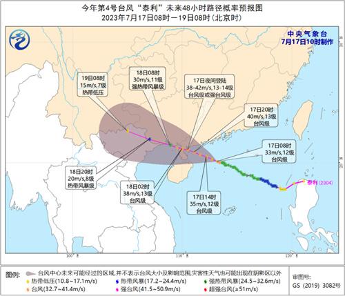 預計17日8:00~18日8:00,受到泰利和外部云層的影響,南海大部分瓊中海峽、北部灣、廣西沿海、廣東沿海、海南島沿岸、中沙西沙、南沙黃巖島附近,會有6~8級的大風,其中從中海峽北部海域、北部灣北部海域、廣東中西部沿海等等地方,風力為9~11級,臺風中心所經(jīng)過的島嶼和附近海域,風力一度達到12~14級。