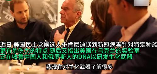 近日2024年總統候選小羅伯特-肯尼迪宣稱美國正在對于中俄研發生化的武器,在不斷收集中國人以及俄羅斯人的DNA。美國紐約郵報在當地時間15日,公開了一段小羅伯特肯尼迪在晚宴上所發表言論的視頻,說到更為可怕的生物武器正在被研制出來。中國在花費數億美元研制種族生物的武器,并隨后補充美國,也在對種族生物期進行研究,目前在對中國人和俄羅斯人DNA收集,這樣可以按照種族進行目標鎖定。