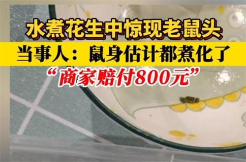 陳女士當時買了水煮花生的時候,是屬于正在邊刷手機邊吃的這個狀態,也并沒有過于留意,當時還以為是桂皮之類的,顏色很深,后來看到牙齒后極為惡心,立馬跑到了廁所嘔吐。店家最后賠付了800元,當事人表示水煮花生是老公買的,老鼠看上去個頭很小,感覺身體都已經被煮化了。