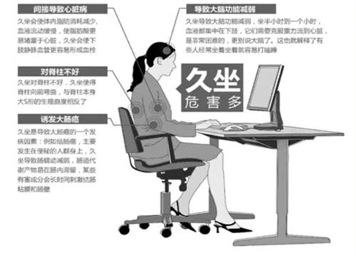 6.現在的成年人每天坐著上班學習,每天都會久坐很長時間,身體的關節就像生銹的機器一樣僵硬,久坐不僅會傷膝蓋,甚至從頭到腳都會受到傷害。